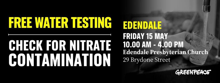 Greenpeace Aotearoa will be coming to Edendale in May to run free water testing for nitrate contamination in drinking water.