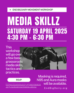 This is a workshop for our End Big Dairy movement, tickets are limited. We would love for local campaigners to attend and learn the ropes of comms work in activism.